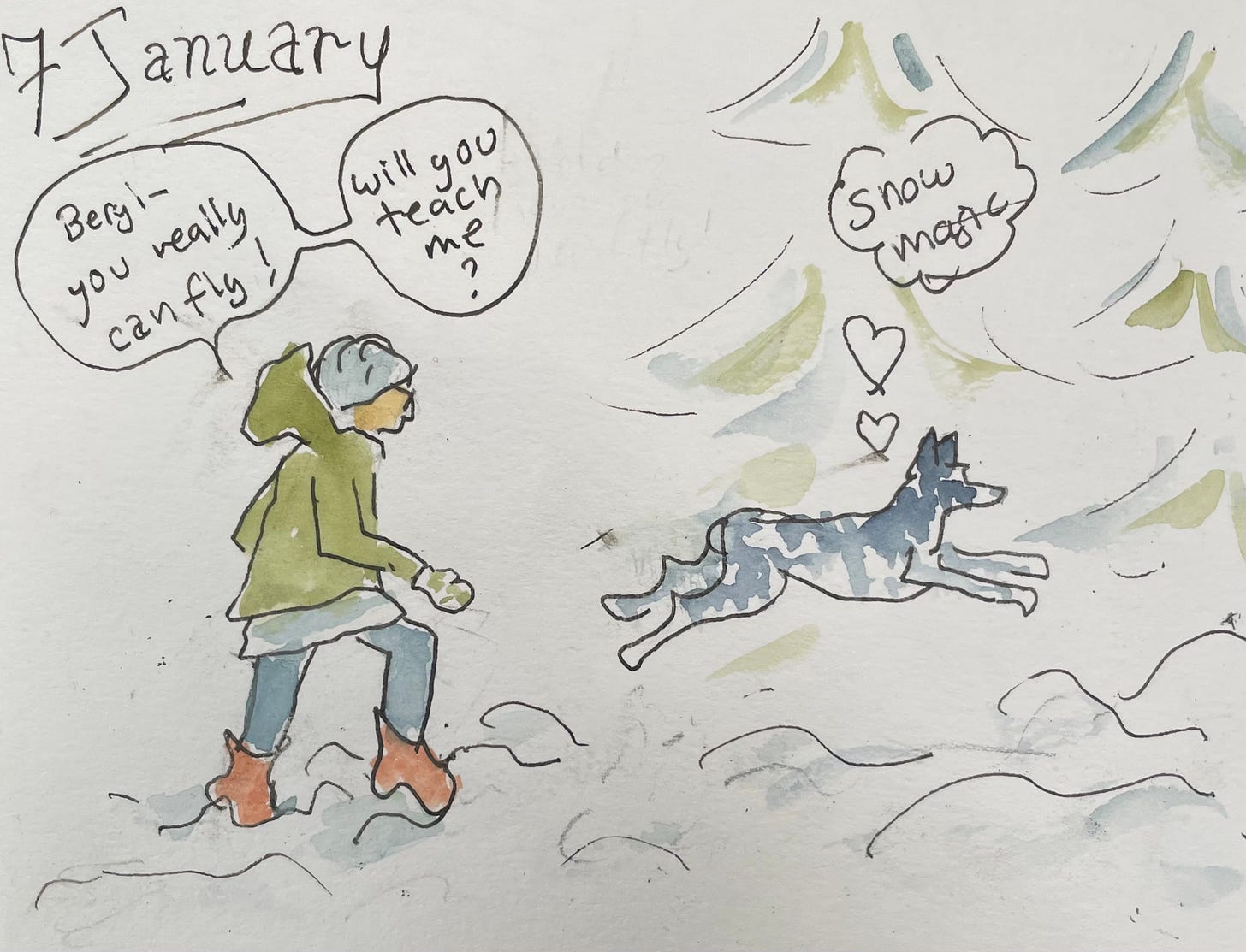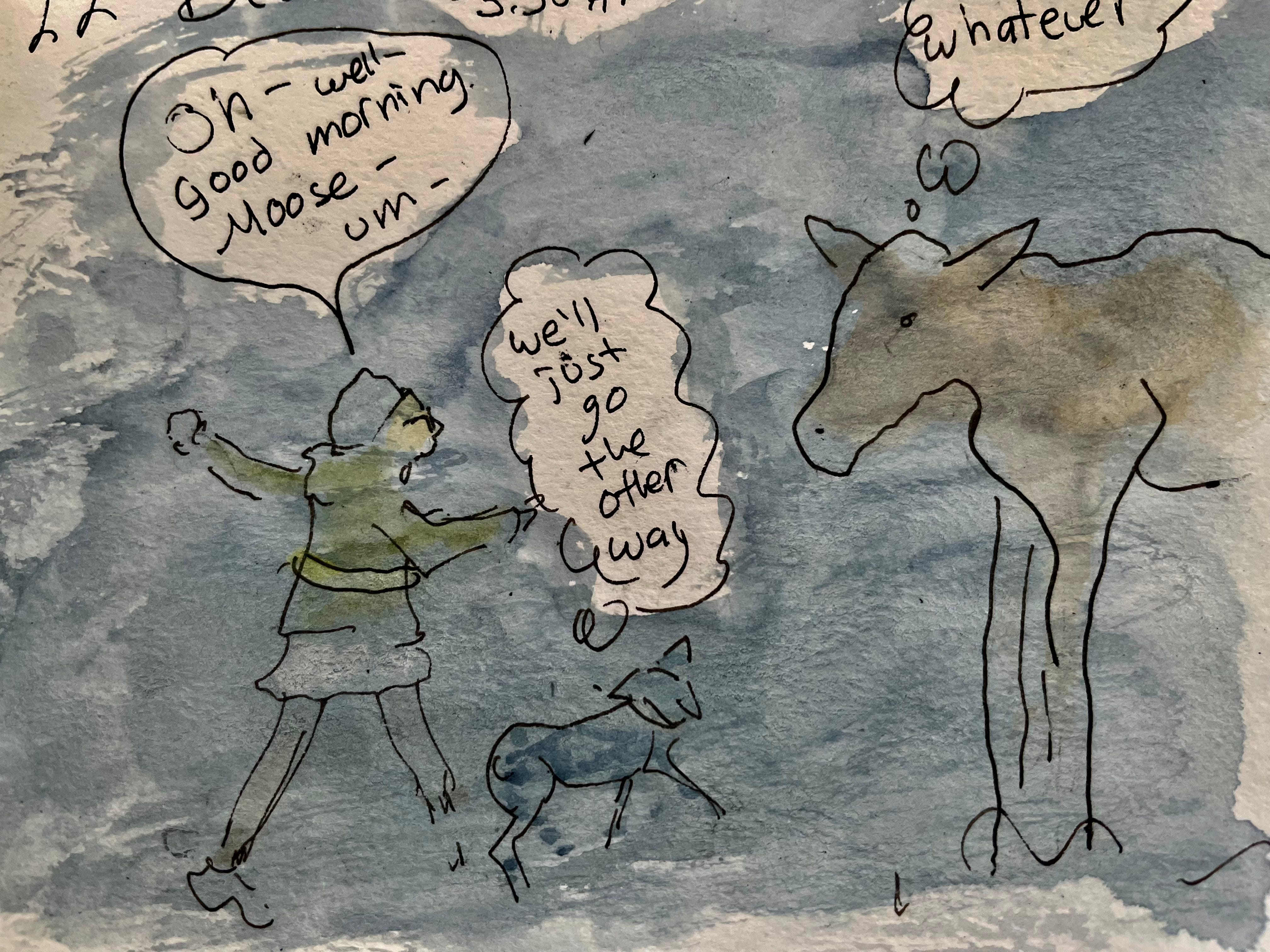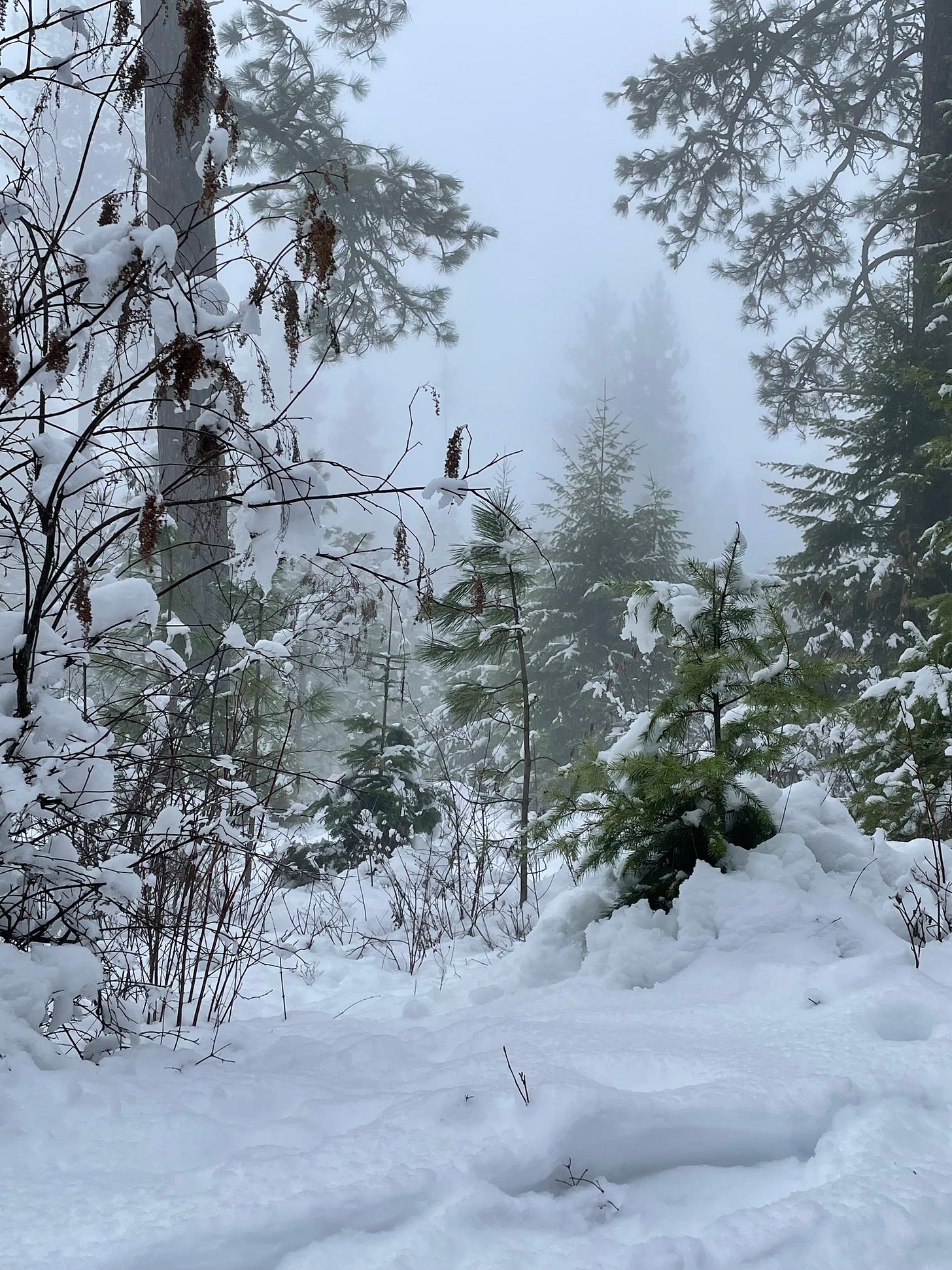 I didn’t include the video I took on the rainy, squishy-snow walk depicted here. Partly because—rainy and squishy and the fluffy snow is more romantic. And partly because it turns out that if you hold a phone up under your hat in an attempt to keep it dry all you can hear in the video (besides drips and splooshy footsteps) is breathing. I found it annoying to listen to and figured you would too.