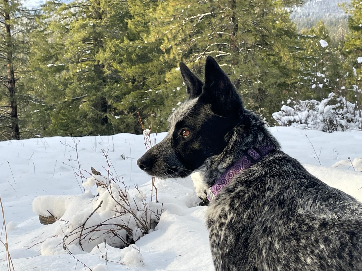 And yes—we’ve been going continually back and forth between snow and slush with some lovely packed trail ice in between—so thank goodness for my boot spikes which keep me feeling stable.