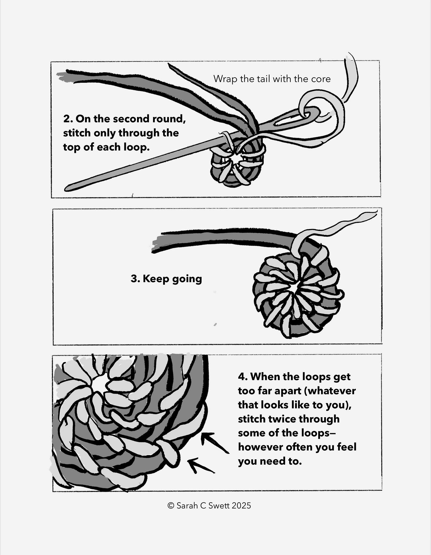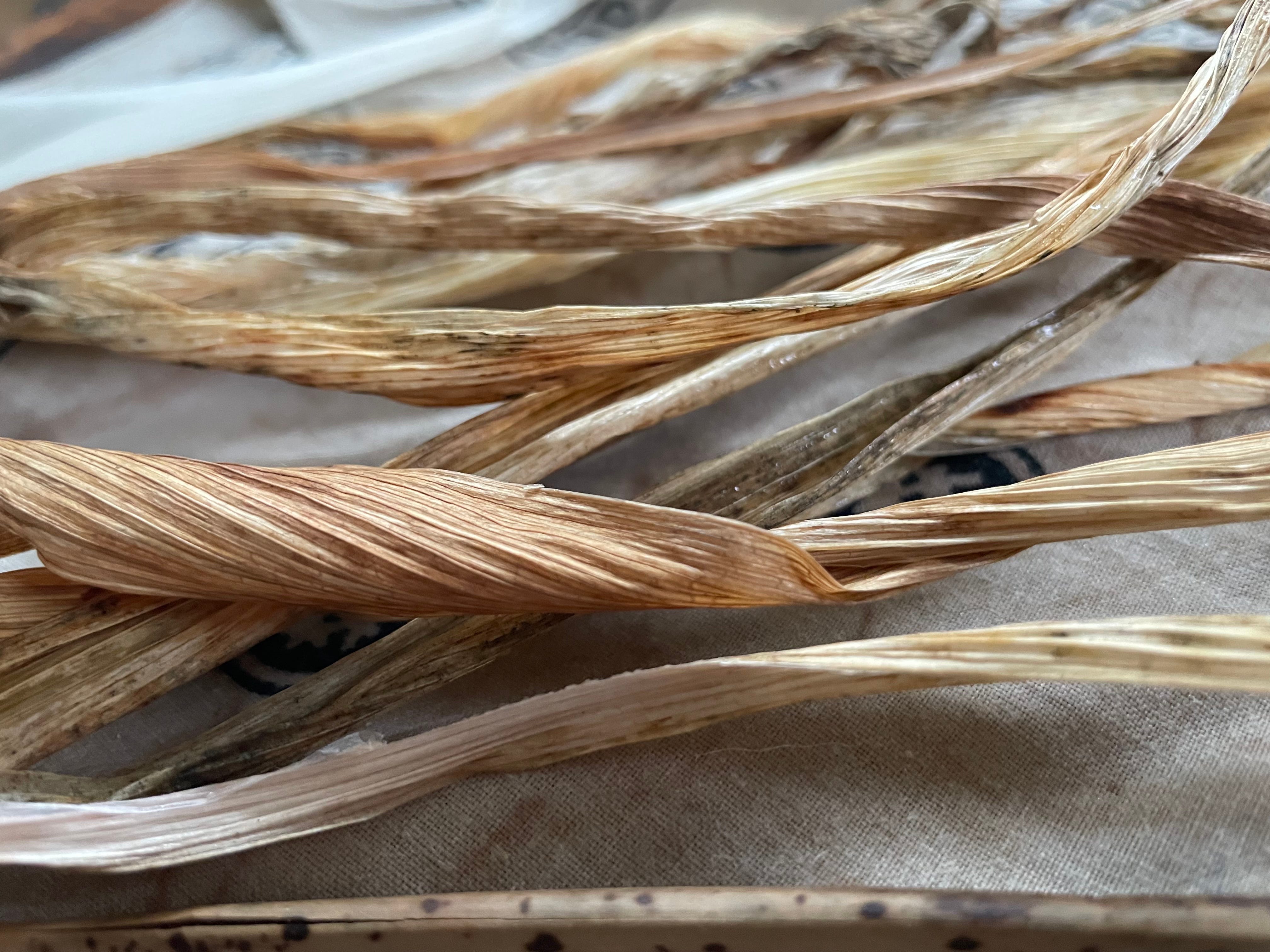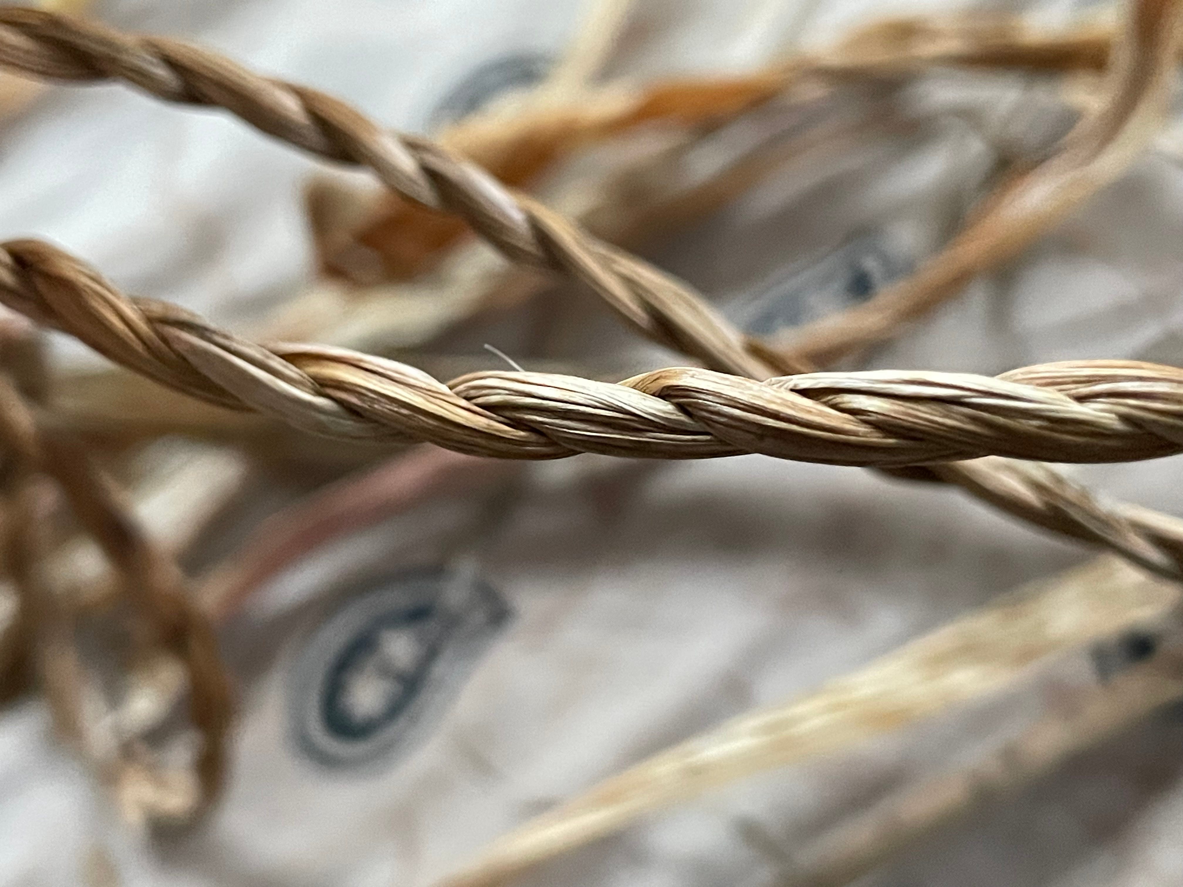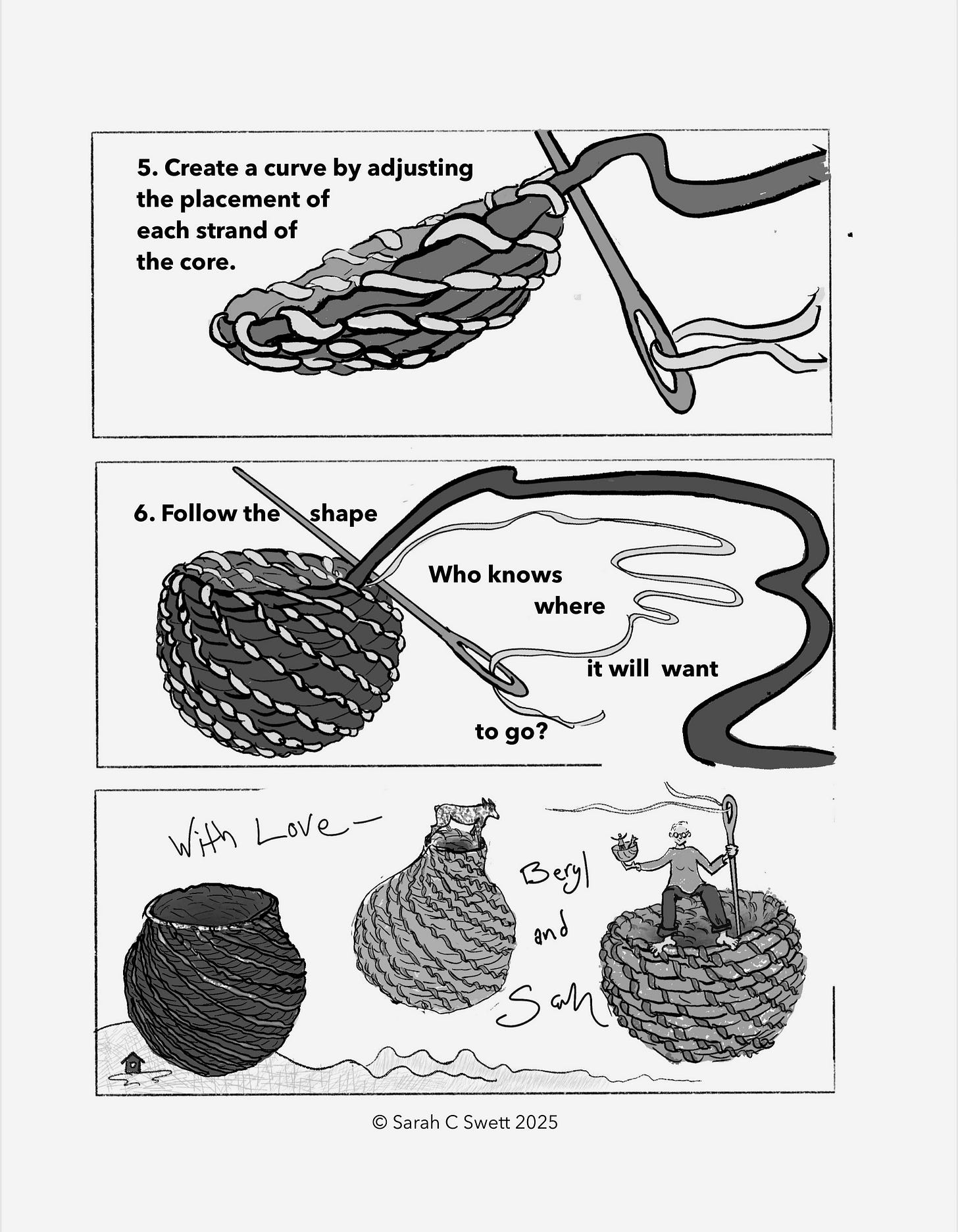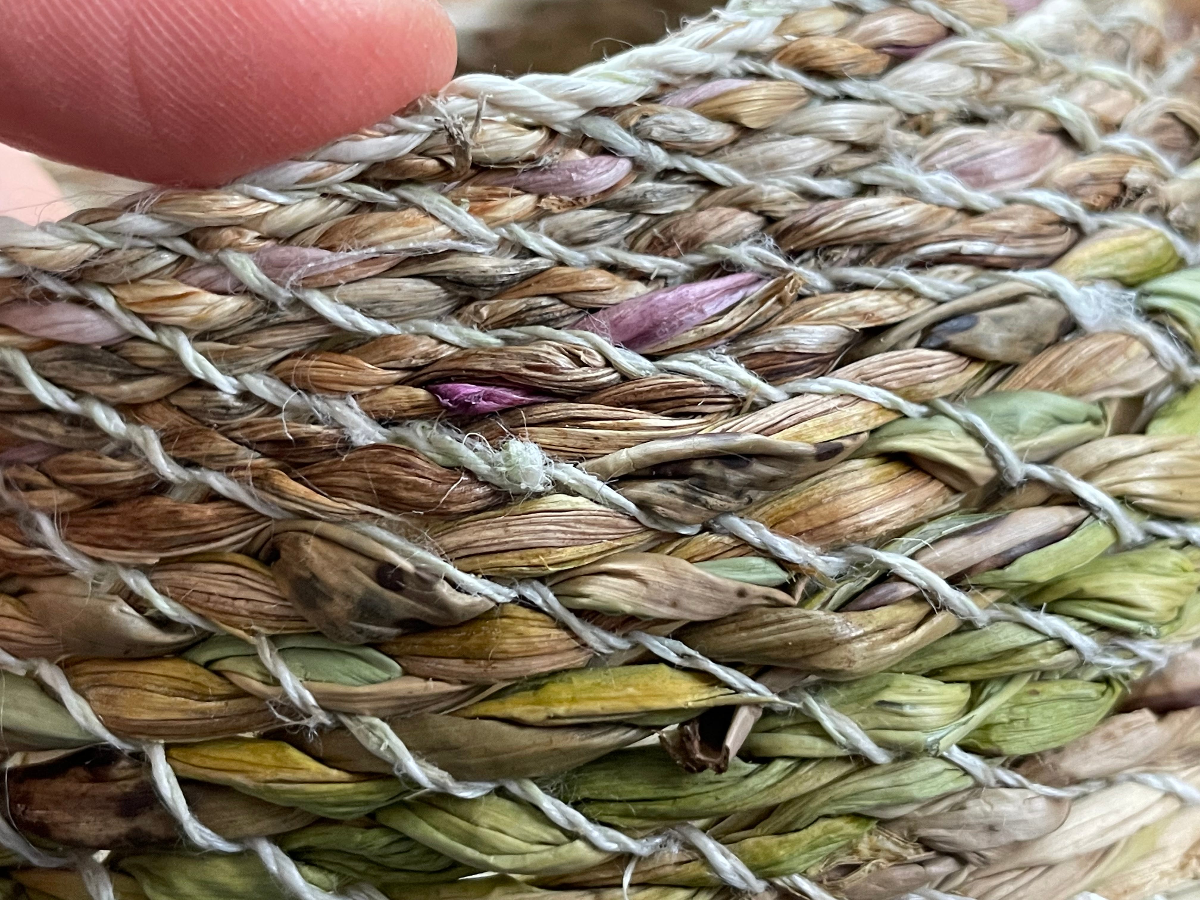 I would remind you that I am still learning myself, and that this wee document covers only one way to begin and stitch the coils, but I trust you can find the basketry section of your local library, bookstore or YouTube and expand your own experiments from there. My very favorite book on the subject is called Baskets from Nature’s Bounty by Elizabeth Jensen. I’ve had it since it first came out, and have used her tables on gathering materials for myriad other projects. Of course there other resources but this is the one I know best.