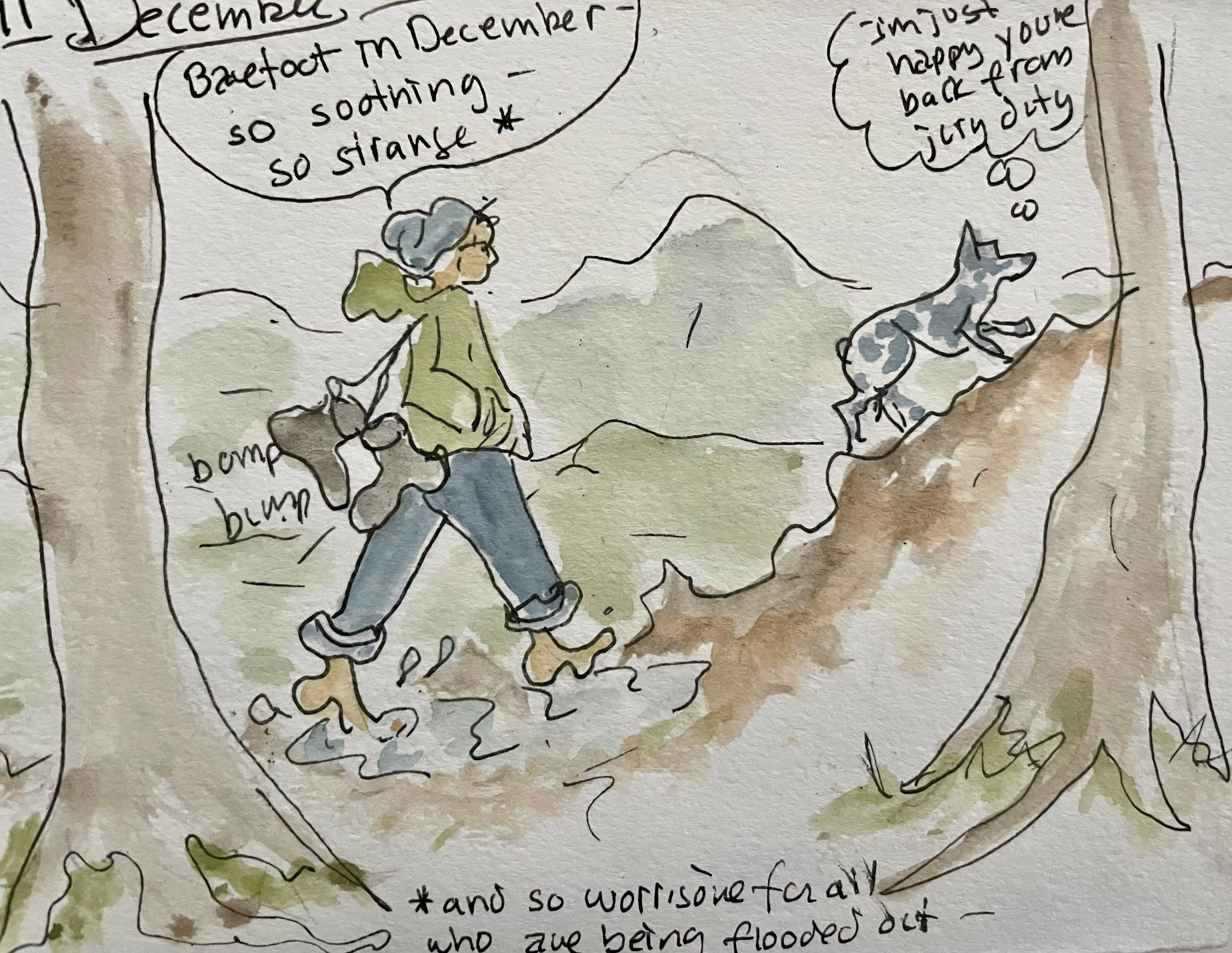 You can see from the comic that as soon as the snow was gone I completely forgot about bringing my walking poles, but it occurs to me that it’s probably a good habit to get into whenever I’m off in the woods. Anyone have thoughts on this? I’ve noticed that at the very least they are handy for flicking sticks and rocks off the trail—even as they make it a touch awkward to hold a phone for videos :-)