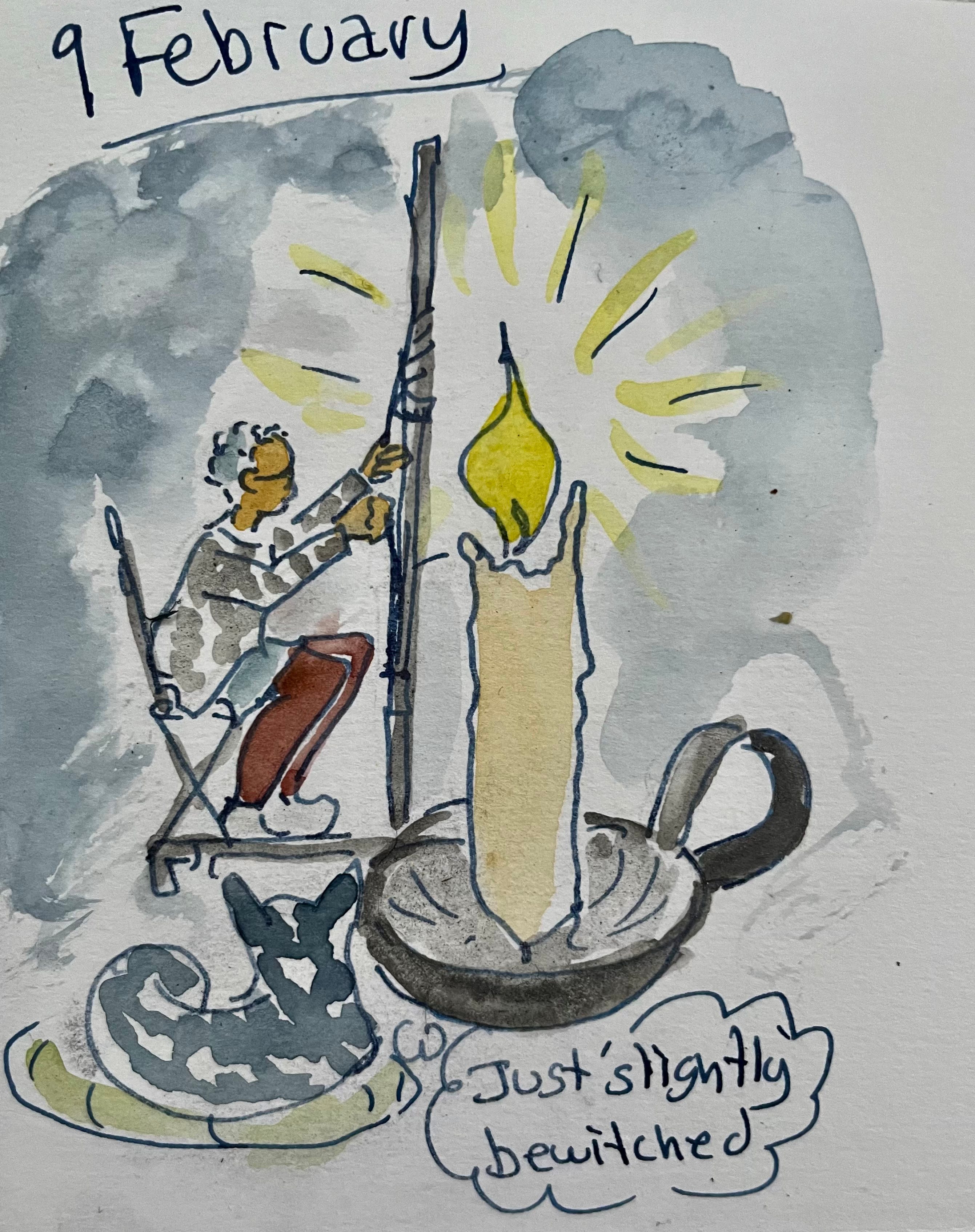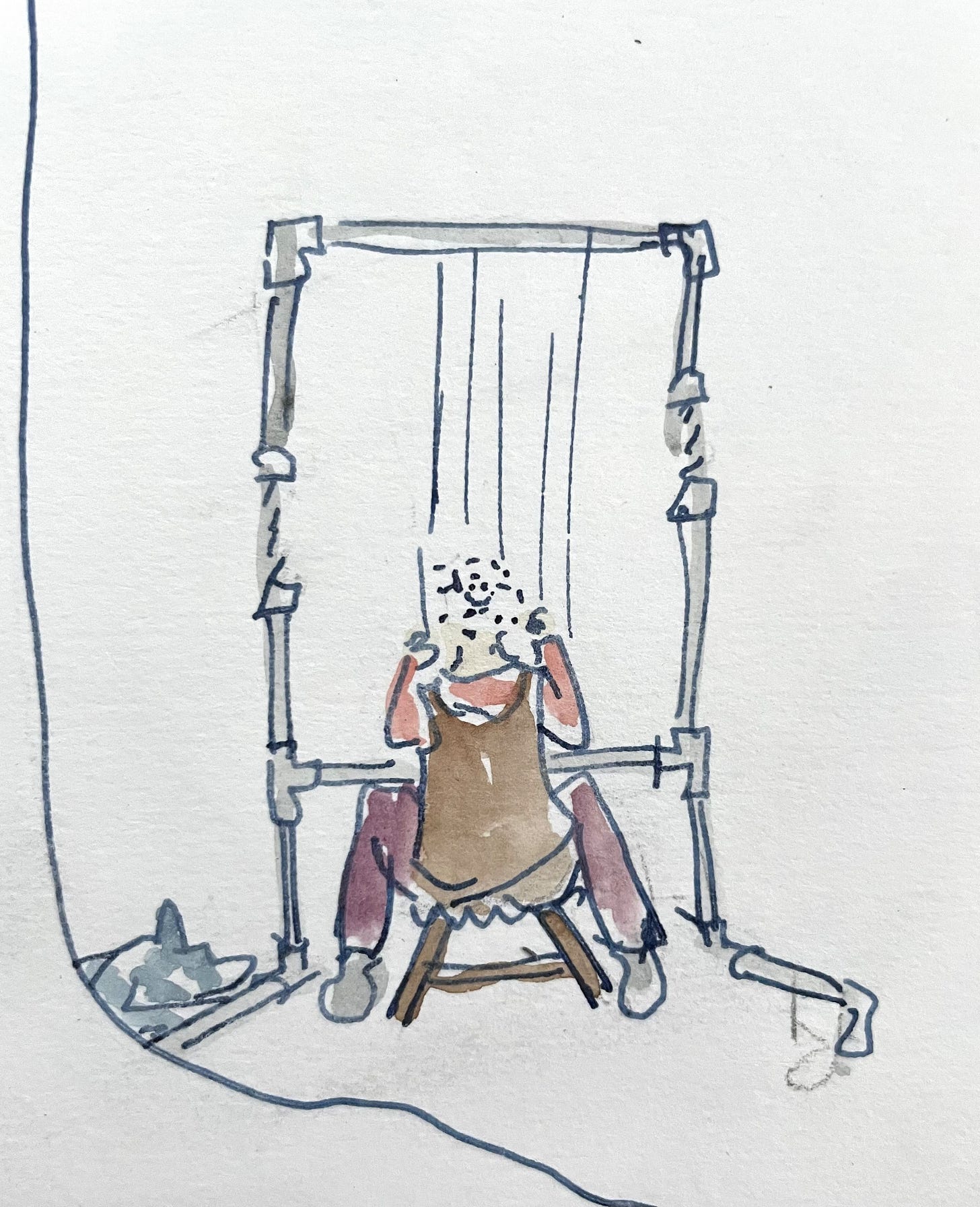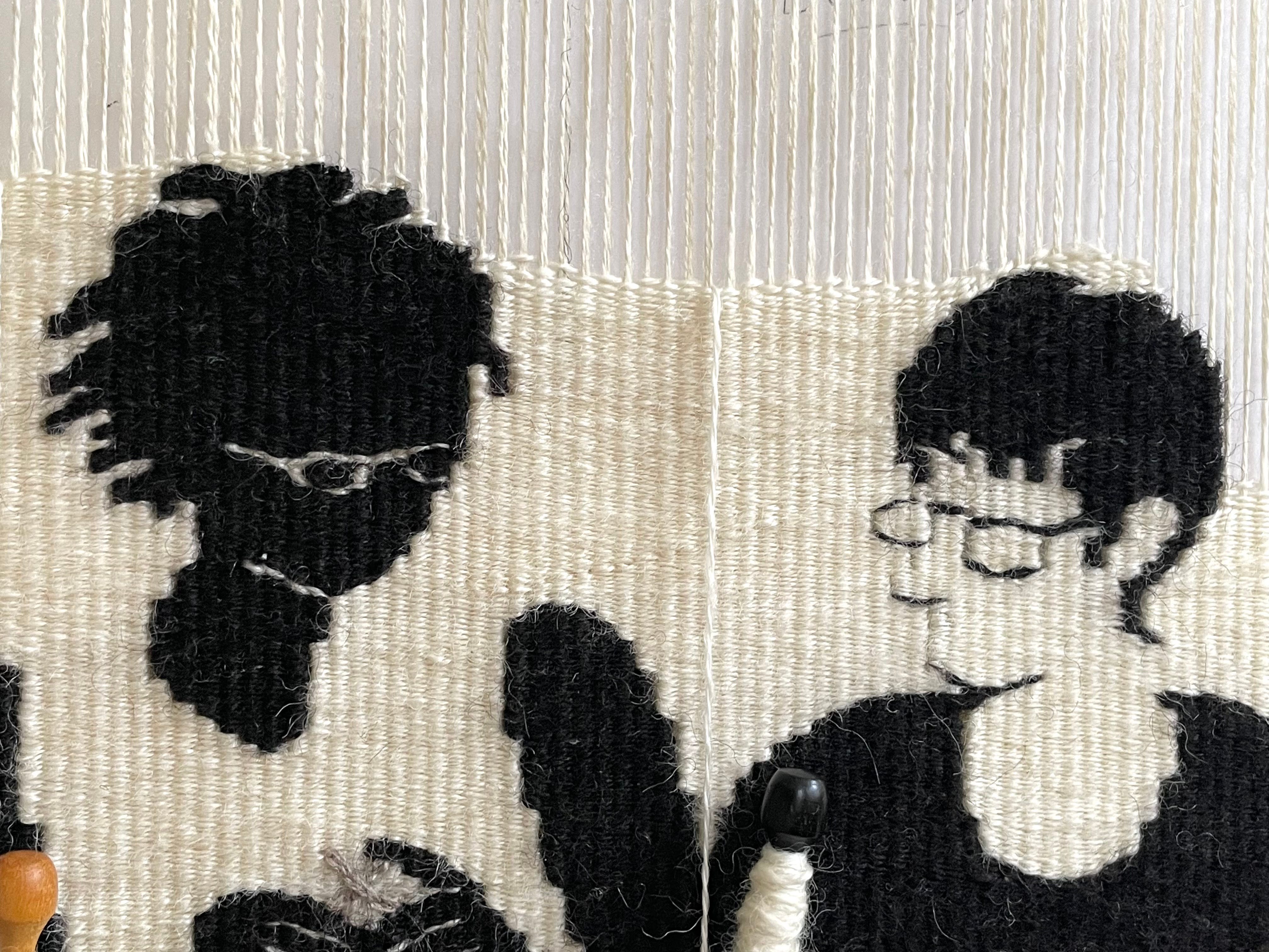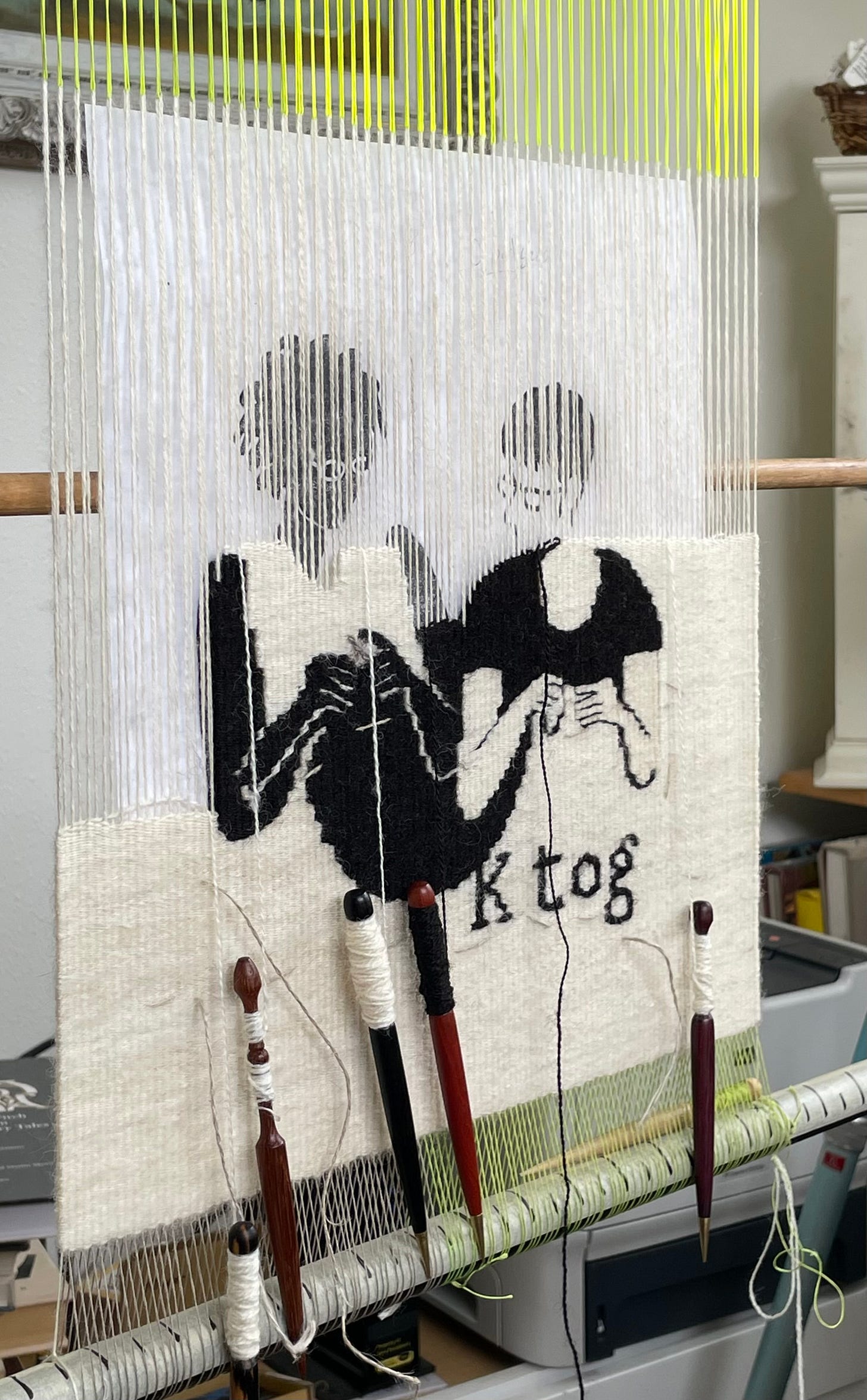 First figurative, cartoon-based tapestry I’ve woven years—and the first bigger-than-tiny one too. I’m oddly astonished by how captivating it is. But that’s tapestry—fantastically patient while I explore other things, and oh-so-kindly ready to welcome me back when I return. If I were sensible I’d wait till it’s done to show photos. But who wants to be sensible when something feels so right?