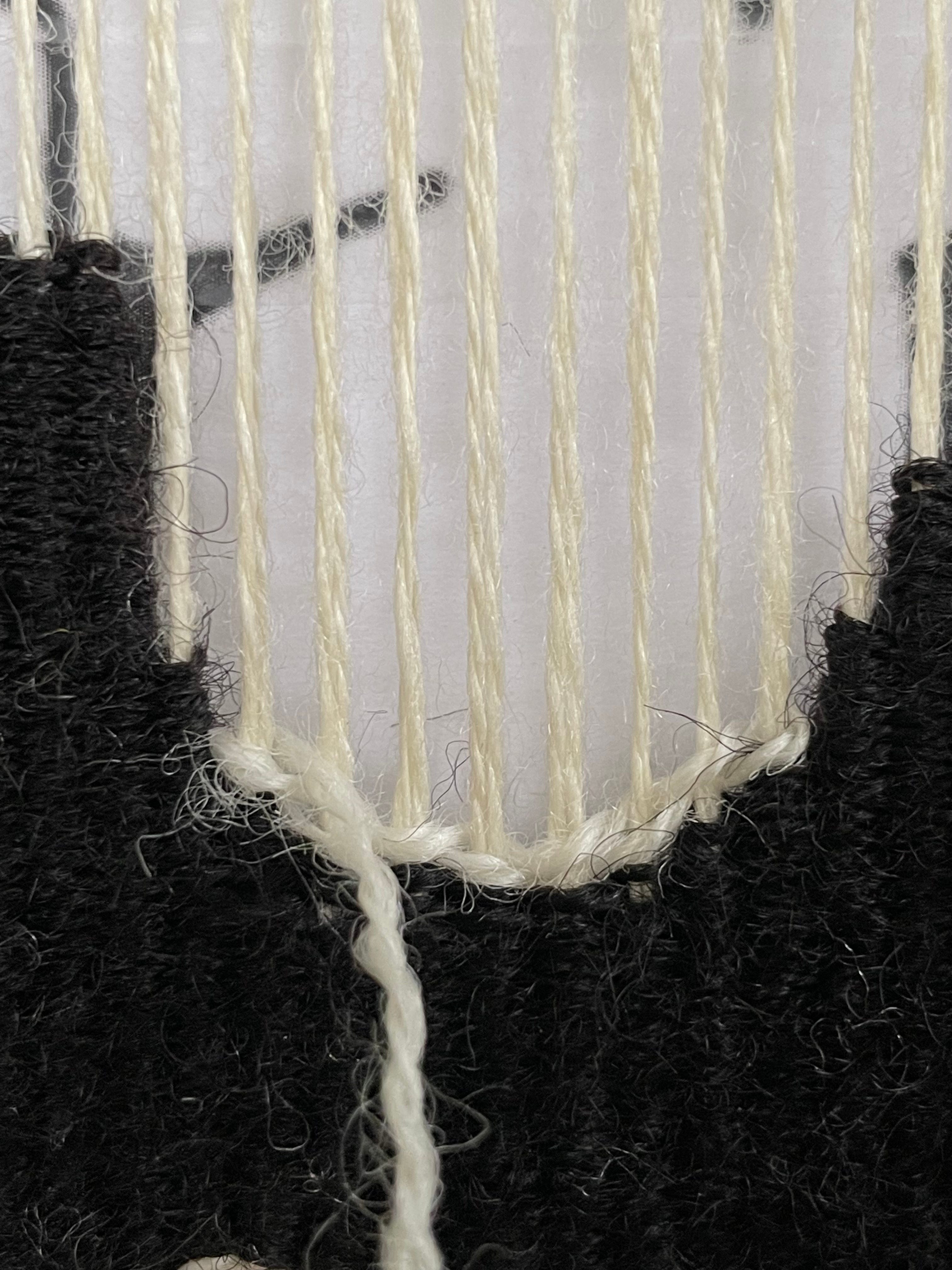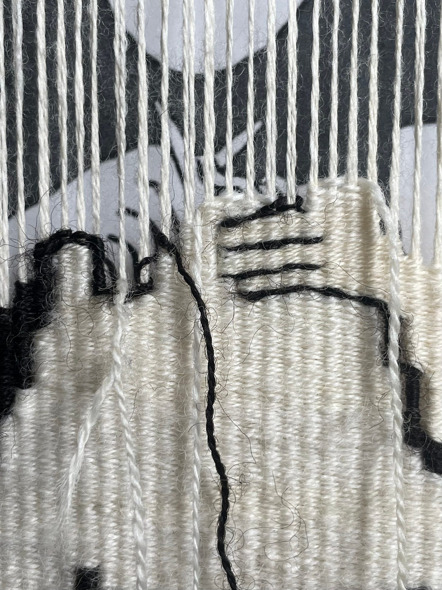 Needless to say, I was inspired. Do check out the post both to read all her wise words, and see the fabulous images, including Anna’s paper cuts—which, you may have noticed, helped nudge me to weave this particular image. What could be more clearly black and white than cut paper? Well, maybe a block print… Or text… or..