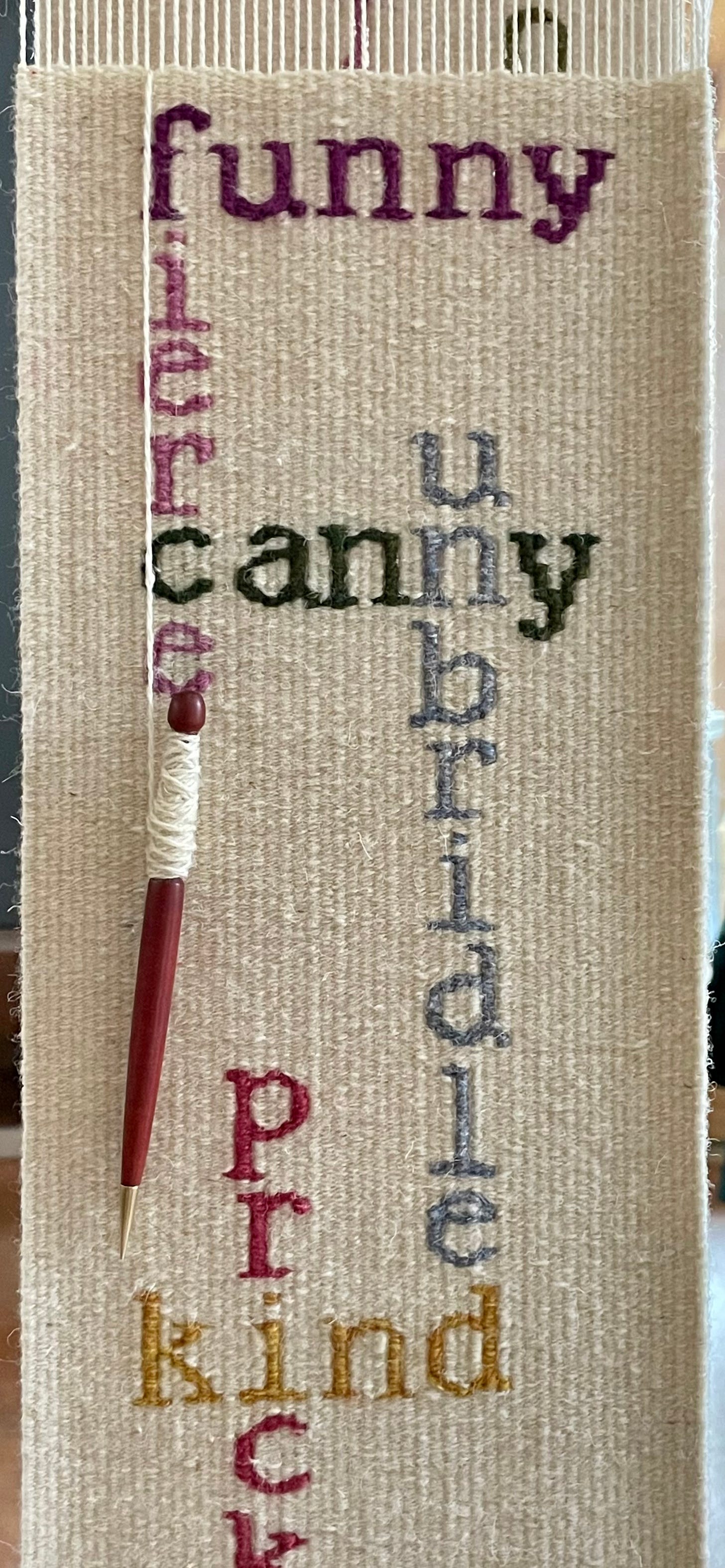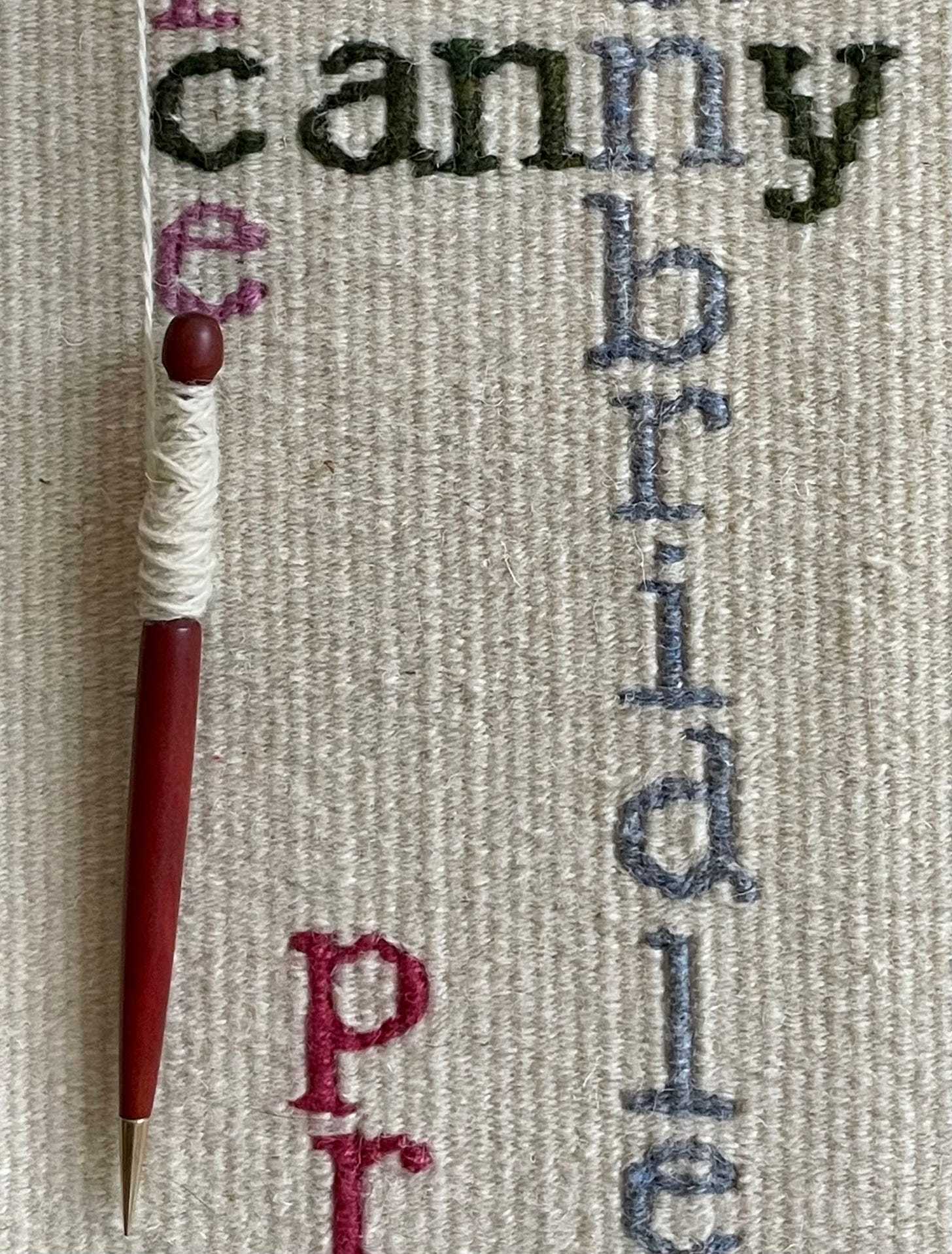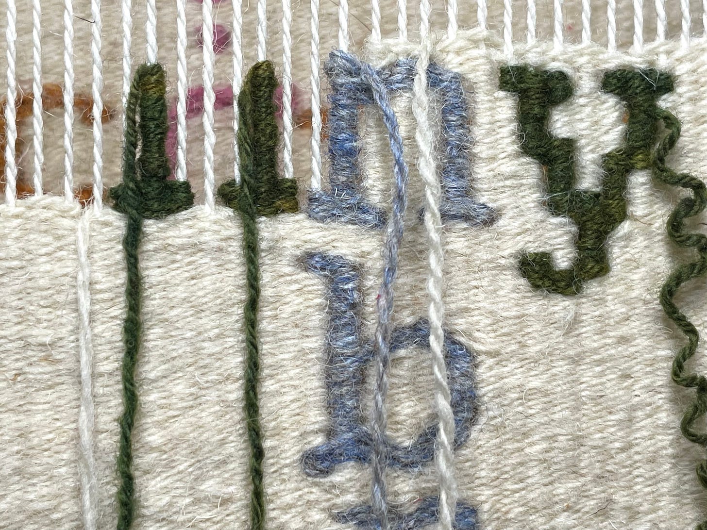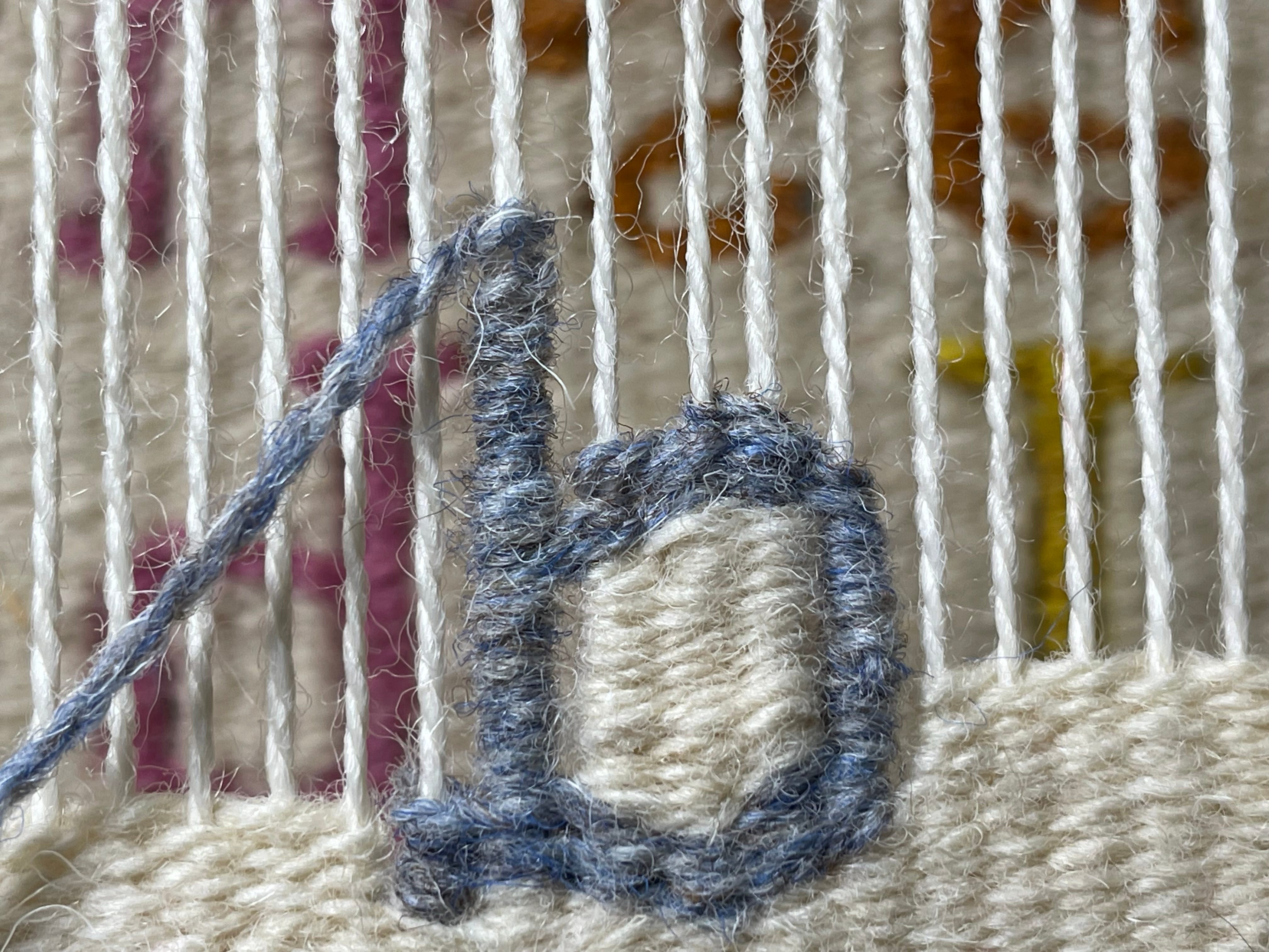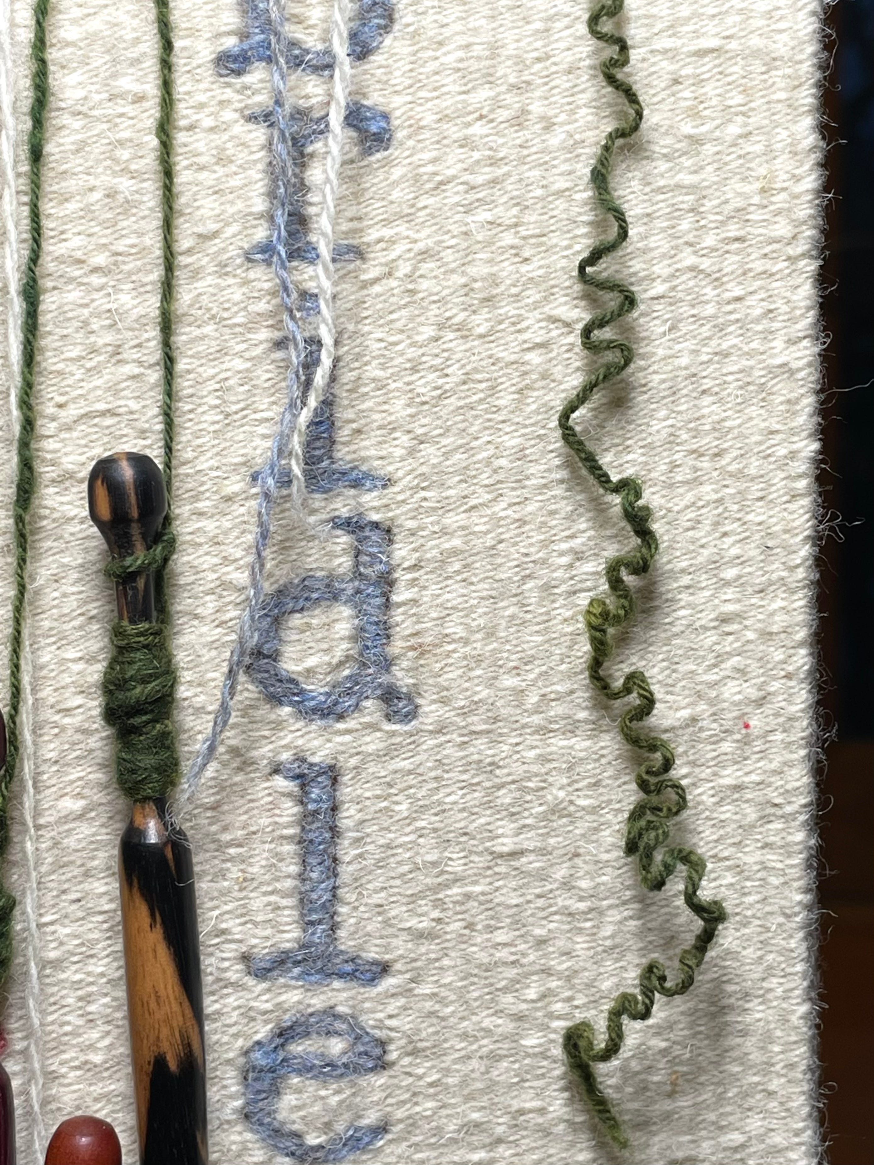 The finished tapestry is 59” x 6.5” (50cm x 17cm). It has not yet been washed or pressed and I haven’t figured out how to photograph the whole thing yet (other than rolled up), but eventually I’ll get there!