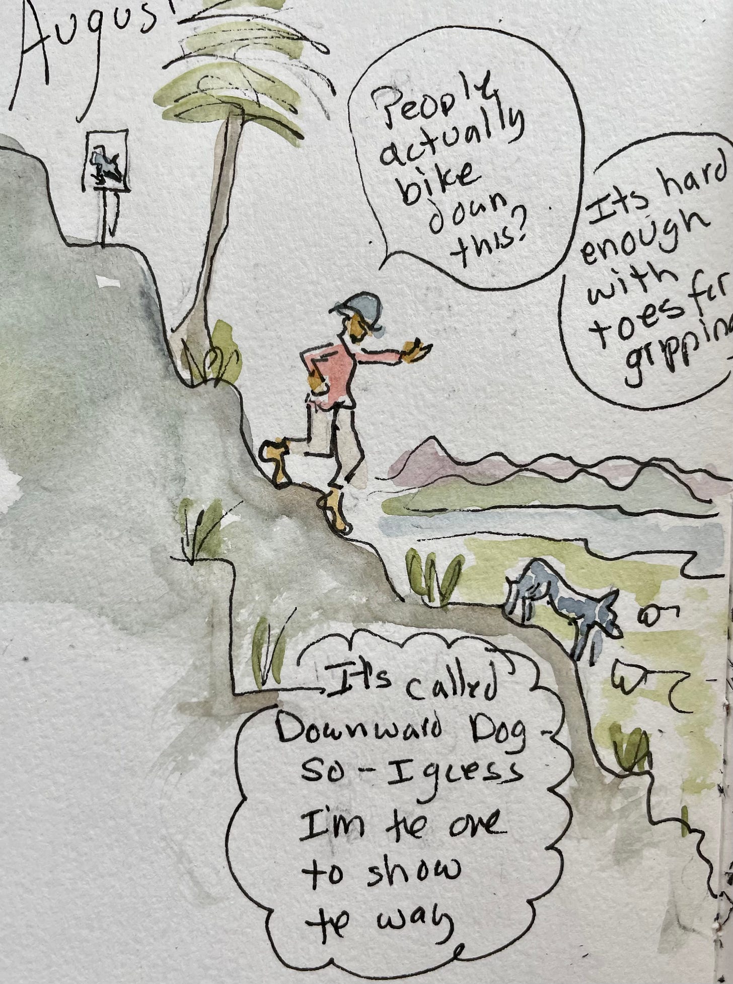 And in case you think I’m a little nuts I will say that I don’t go fast, don’t do hills (there aren’t any between my son’s house and mine), and scooting is faster than walking, easier on my joints, and less fraught than a biking with Beryl when she is trotting beside me.